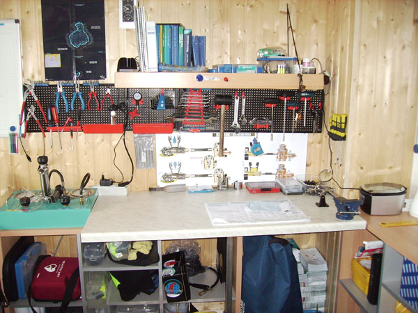 Für das Flaschenfüllen steht ein 300bar Bauer Kompressor zur Verfügung. Zur Sicherheit ist immer ein Sauerstoffkoffer und ein Defibrilator für die Freiwassertauchgänge dabei.