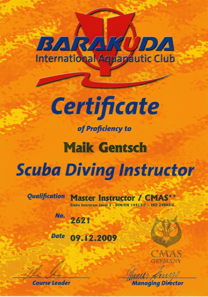 Ablegung des Spezialbrevet in Orientierung unter Wasser und Tauchsicherheit&