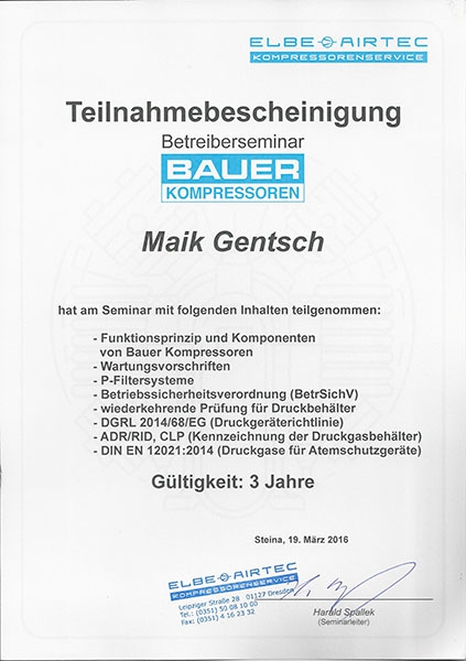 Kompressor Betreiber- und Wartungsseminar bei der Firma Bauer