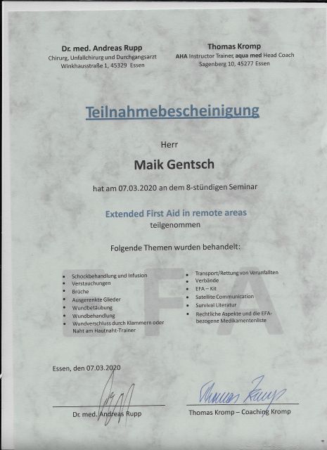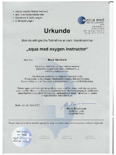 Ausbildung zum aqua med Oxigen und Medical Instructor