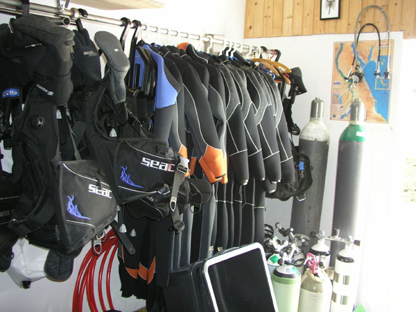 Es wird mit Tauchequitment der Firmen Balzer, Poseidon, SeacSub und Polaris getaucht.