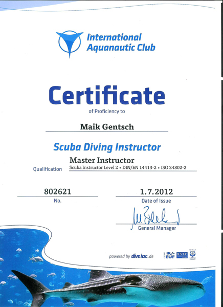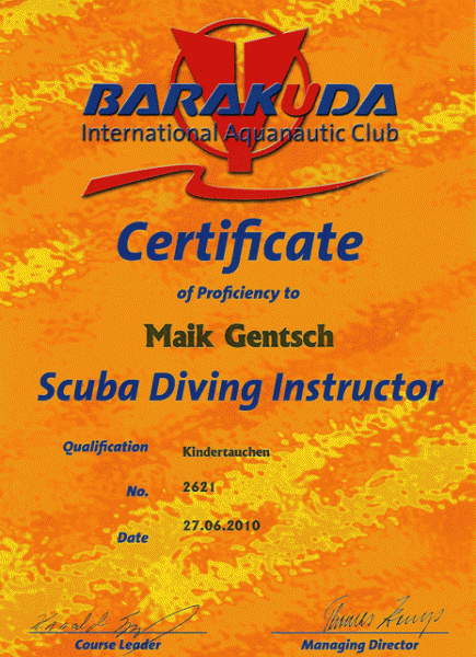 Ablegung des Spezialbrevet in Orientierung unter Wasser und Tauchsicherheit&