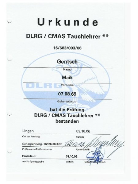Prüfung zum DLRG/CMAS Tauchlehrer **